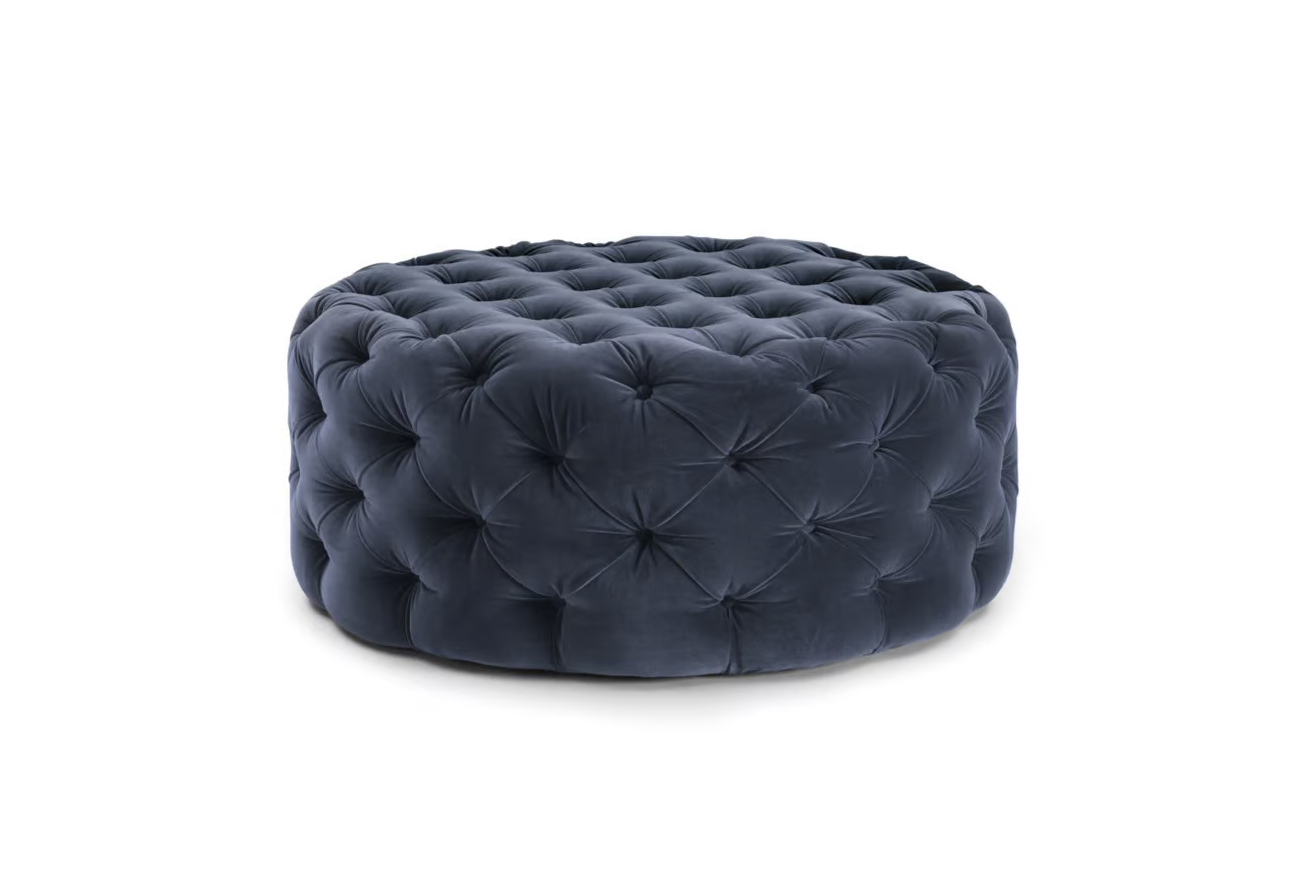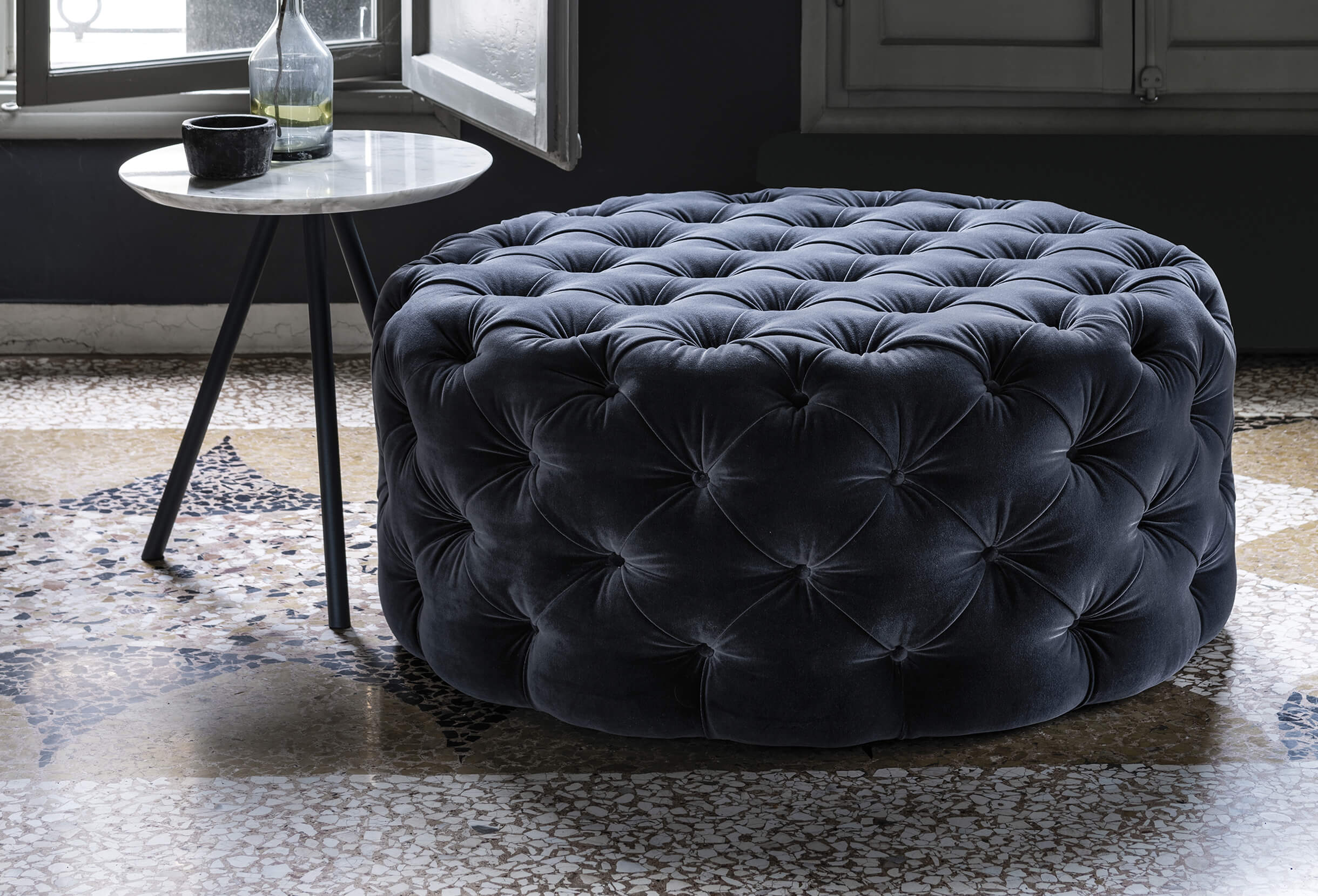 Circular pouf that perfectly matches the Selene bed; they share the soft and elegant aspect given by the craftsmanship of the refined capitonné padding.