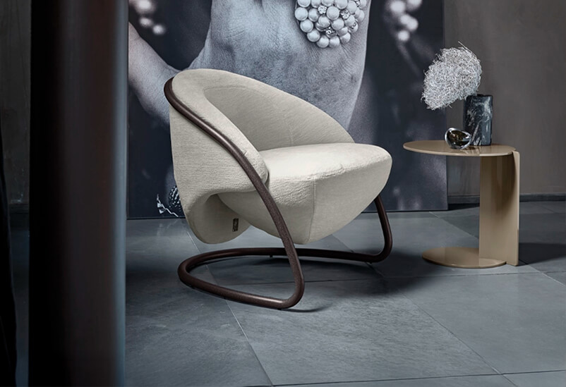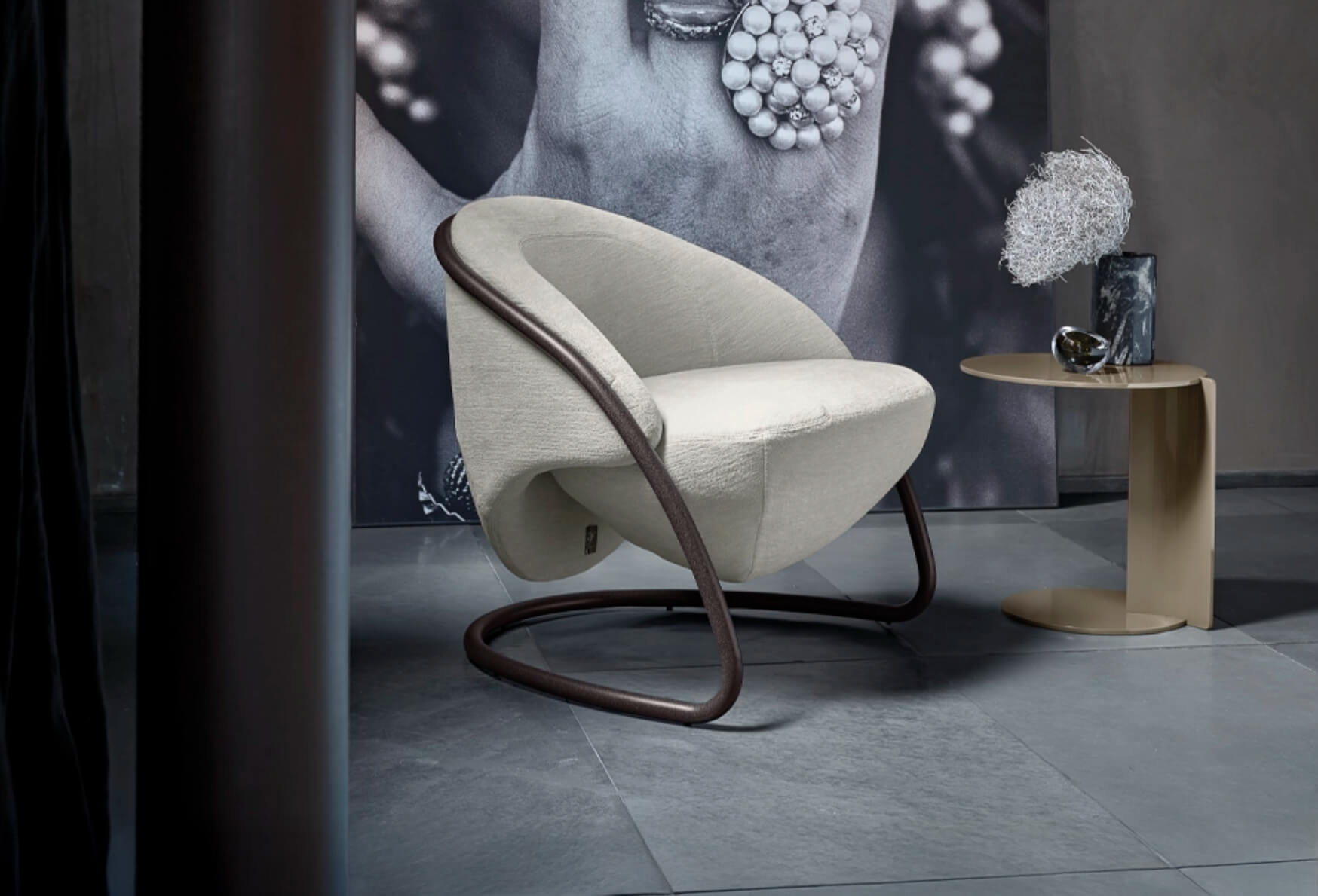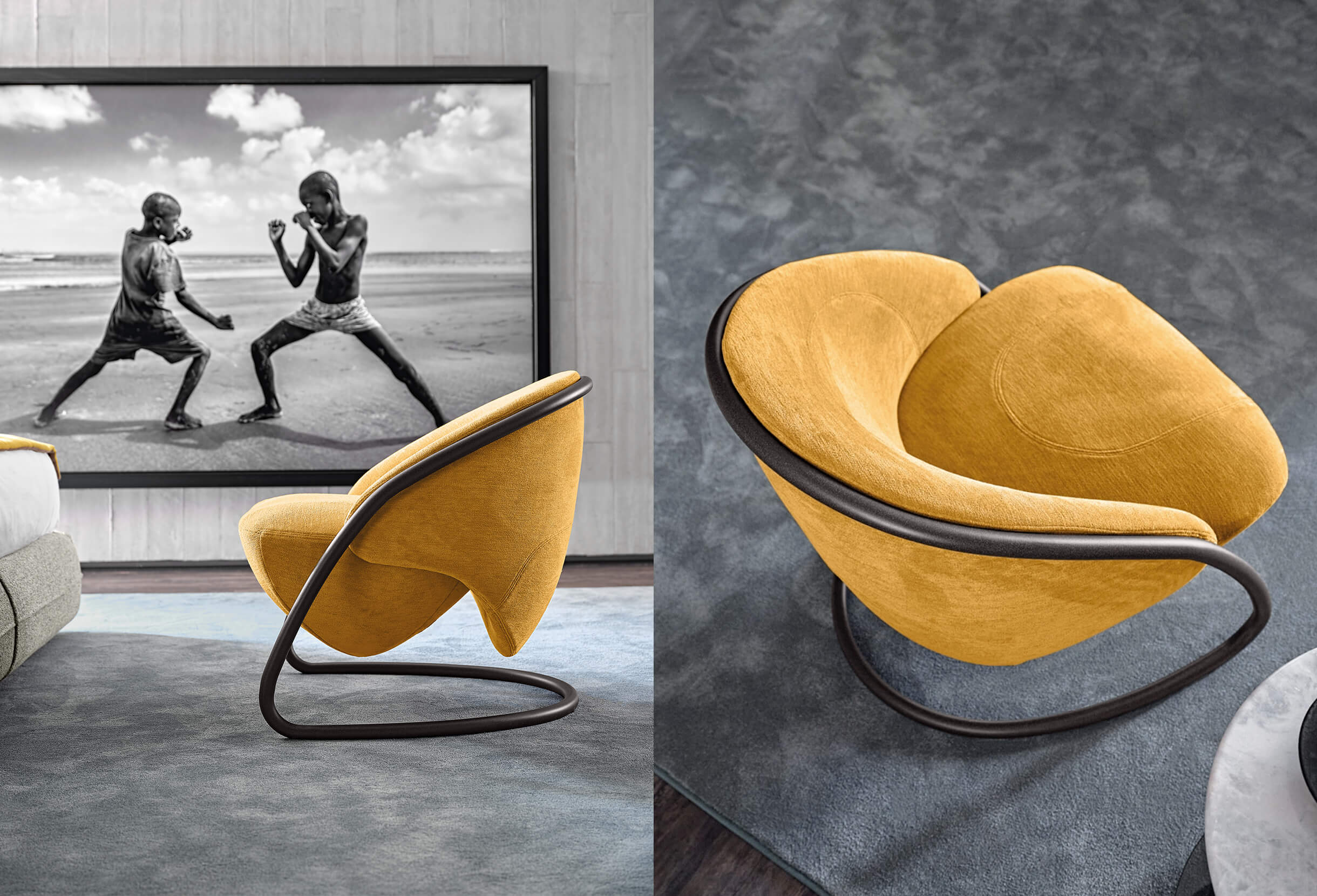 Freedom is a fluid, contemporary armchair shaped by continuous, sweeping lines. Soft curves and precise tailoring create a welcoming, sculptural form that embodies ease, elegance and movement.
