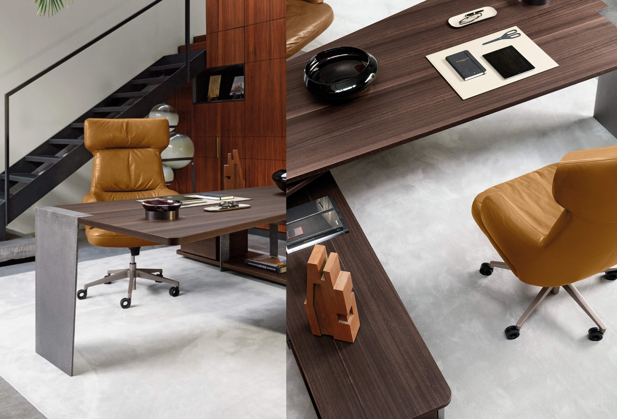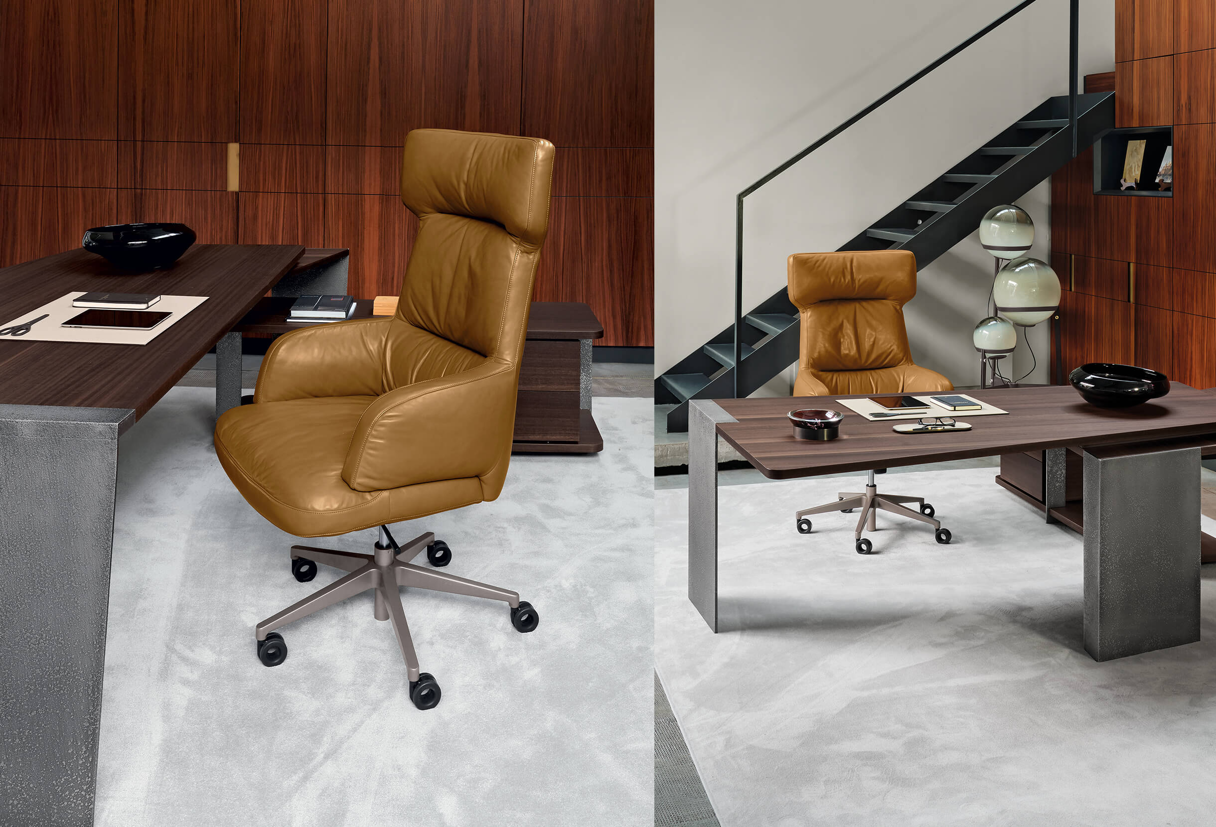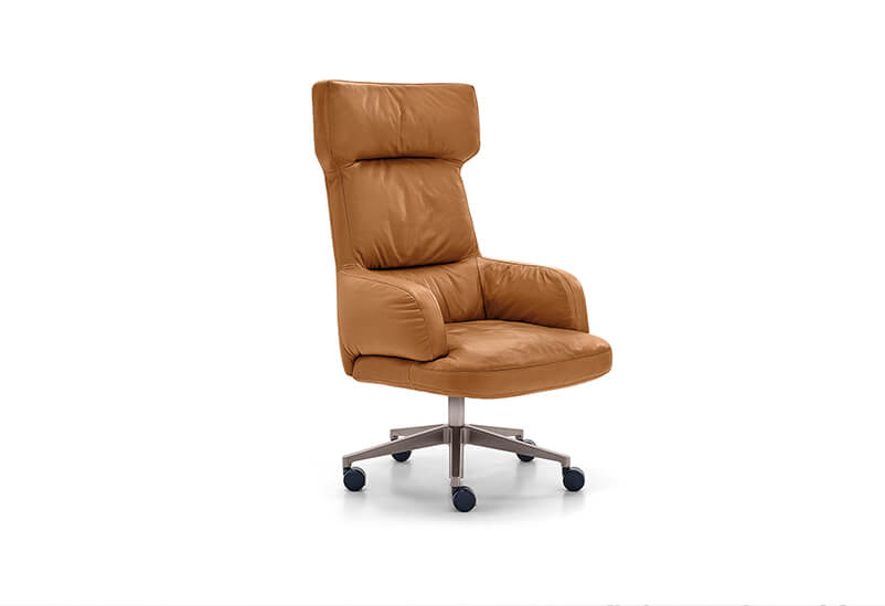Forbes is a modern executive chair with a strong architectural profile. Lipparini’s design features clean lines, a precisely structured seat and a seamless swivel mechanism, delivering both ergonomic support and understated elegance for the office.