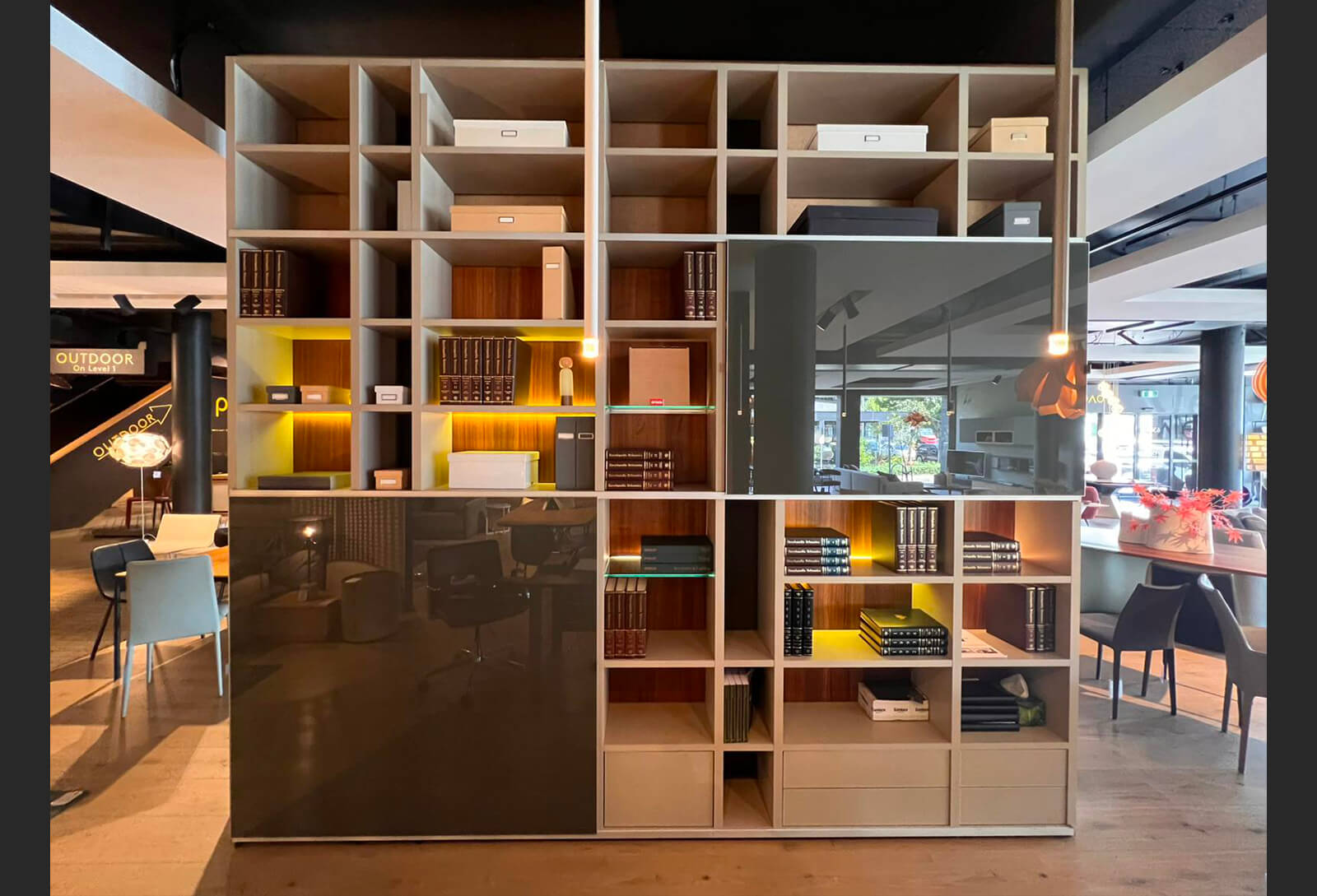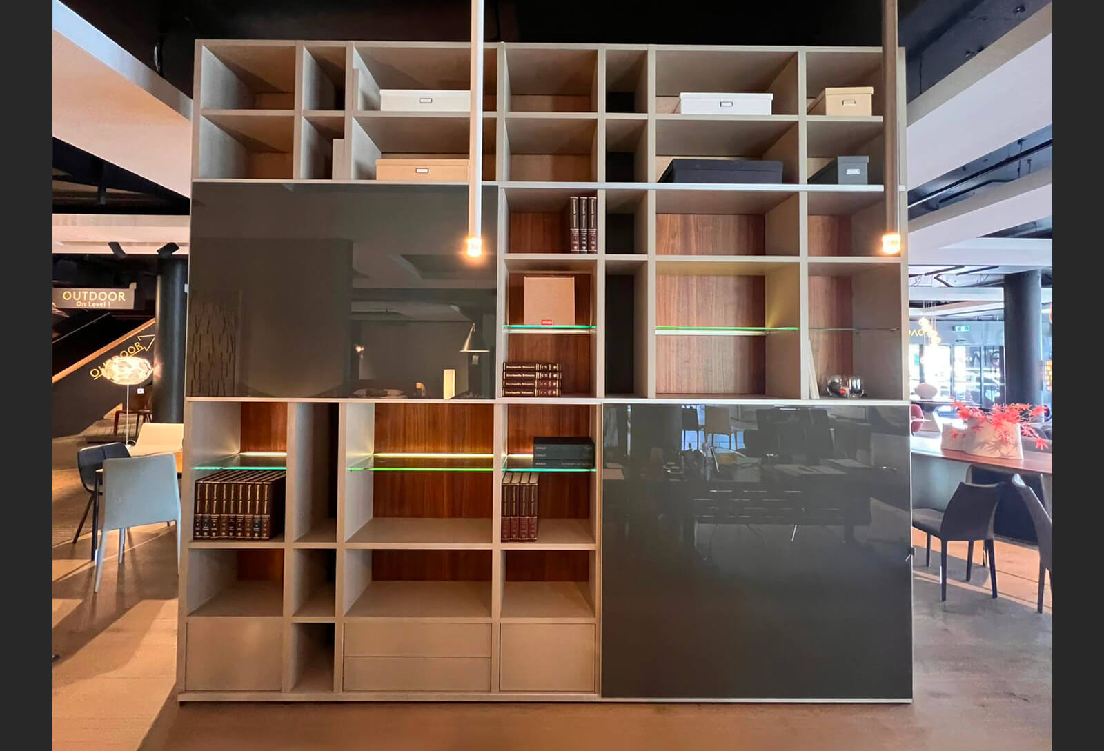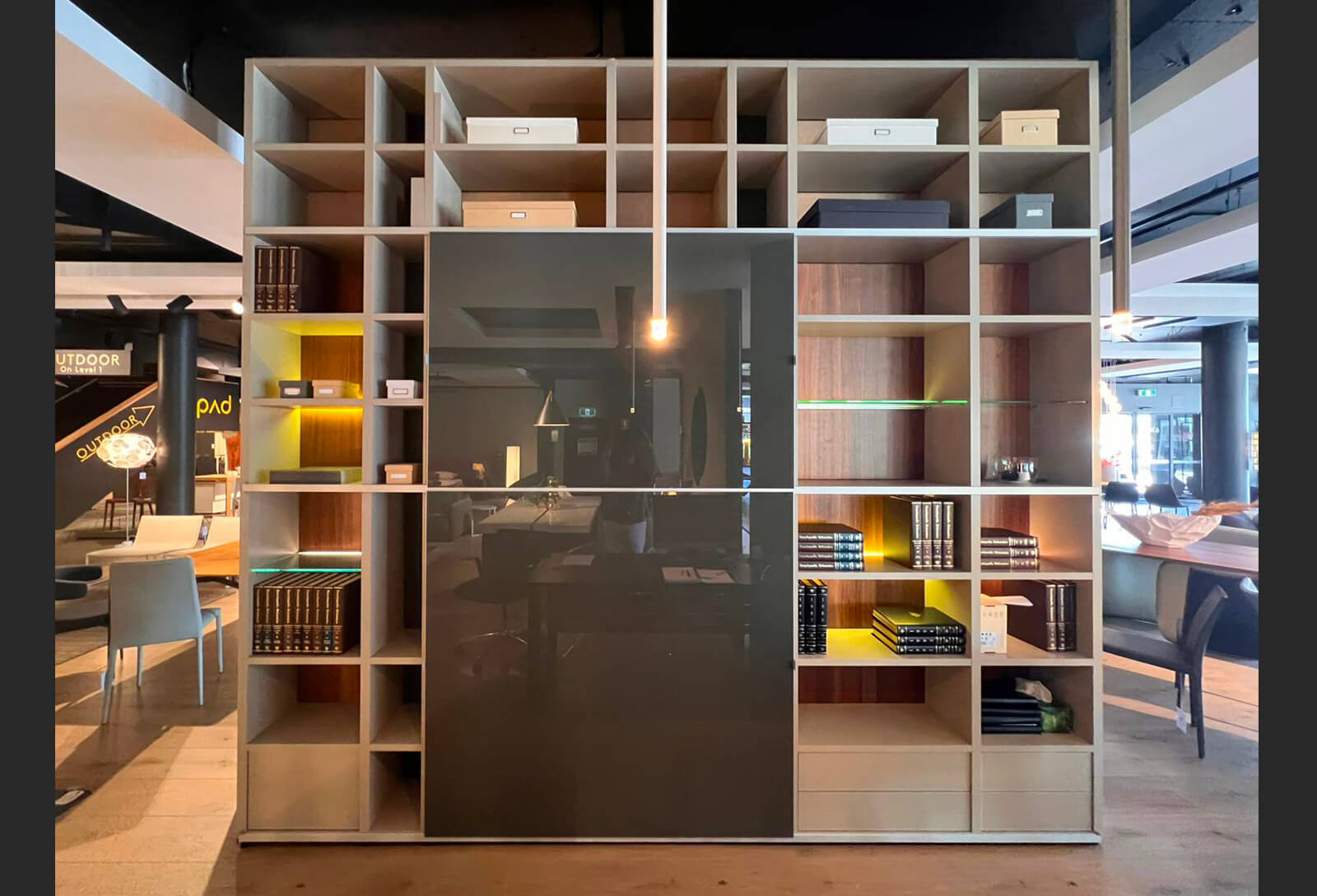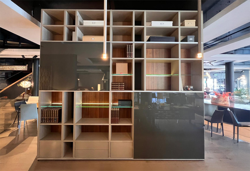 Mega-Design wall unit by hülsta made in Germany. Lacquer Sand, walnut, grey lacquer and grey gloss.