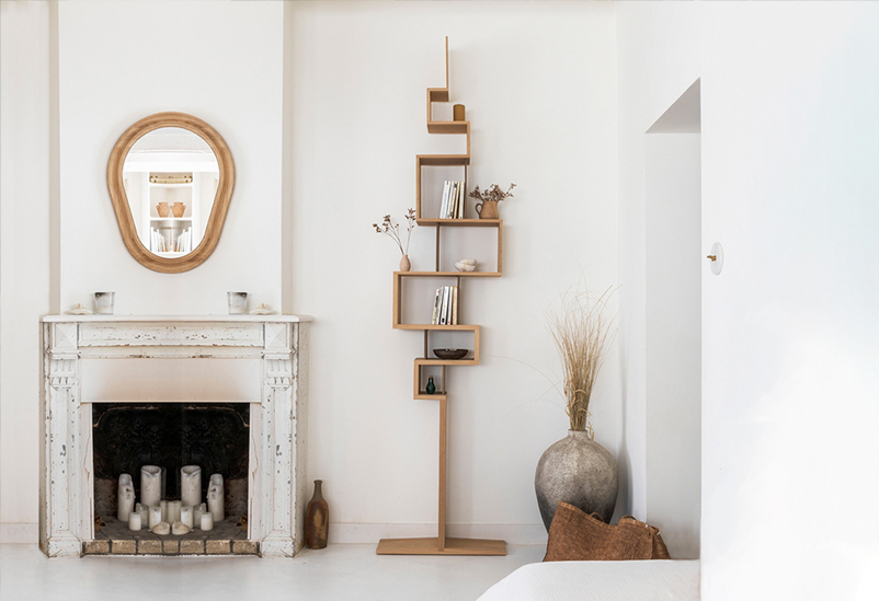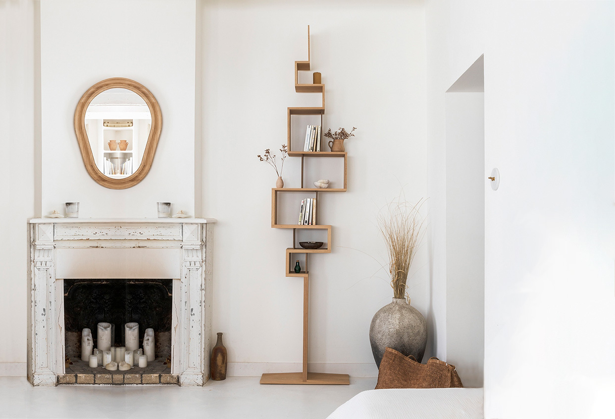Supplied with 5 removable partitions in solid walnut which fit the designed grooves. The Glycine shelving is freestanding, but it is recommended to fix it in one point to the wall. 100% solid oak from French sustainable forest. Designed and made in Anjou (Loire valley).
