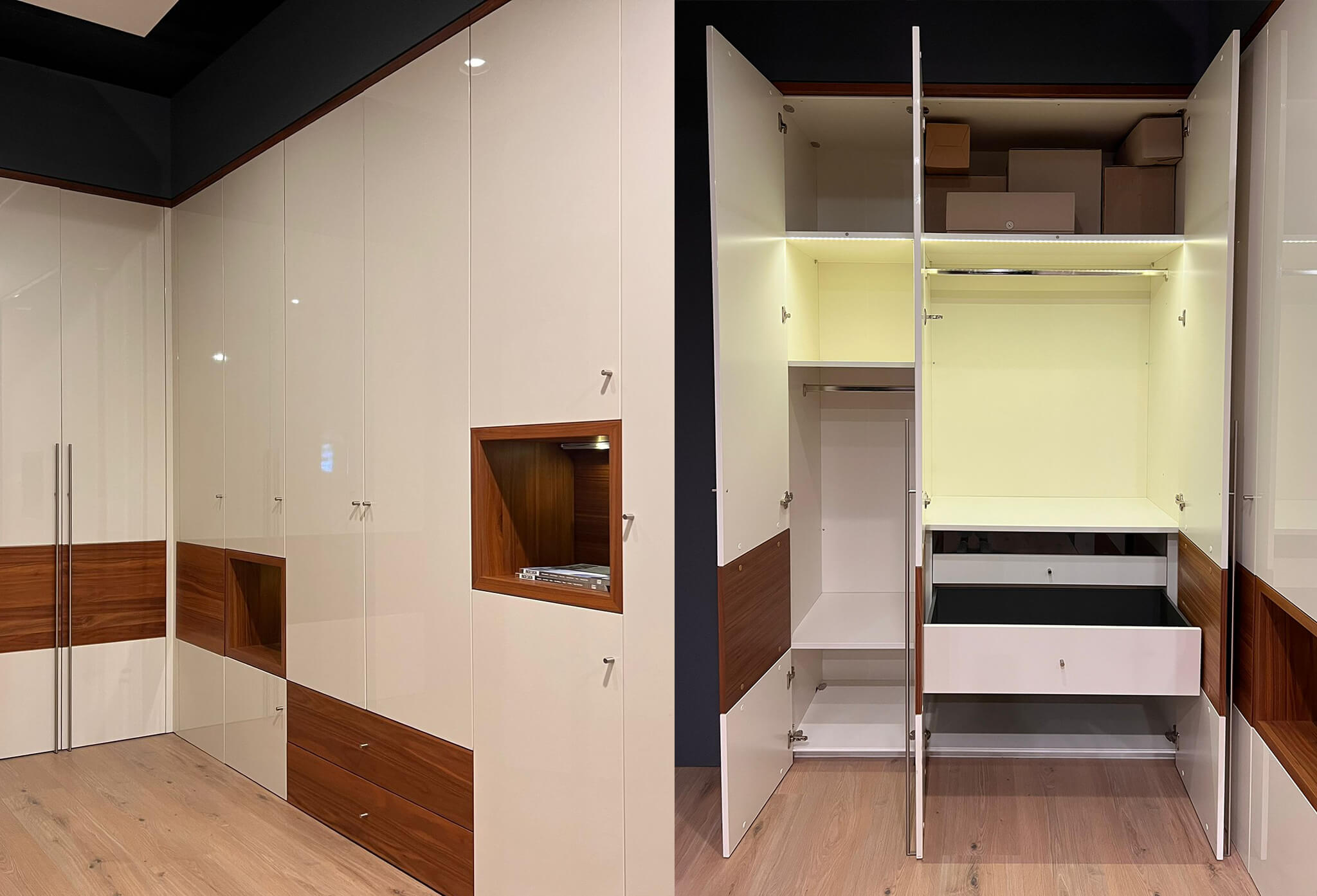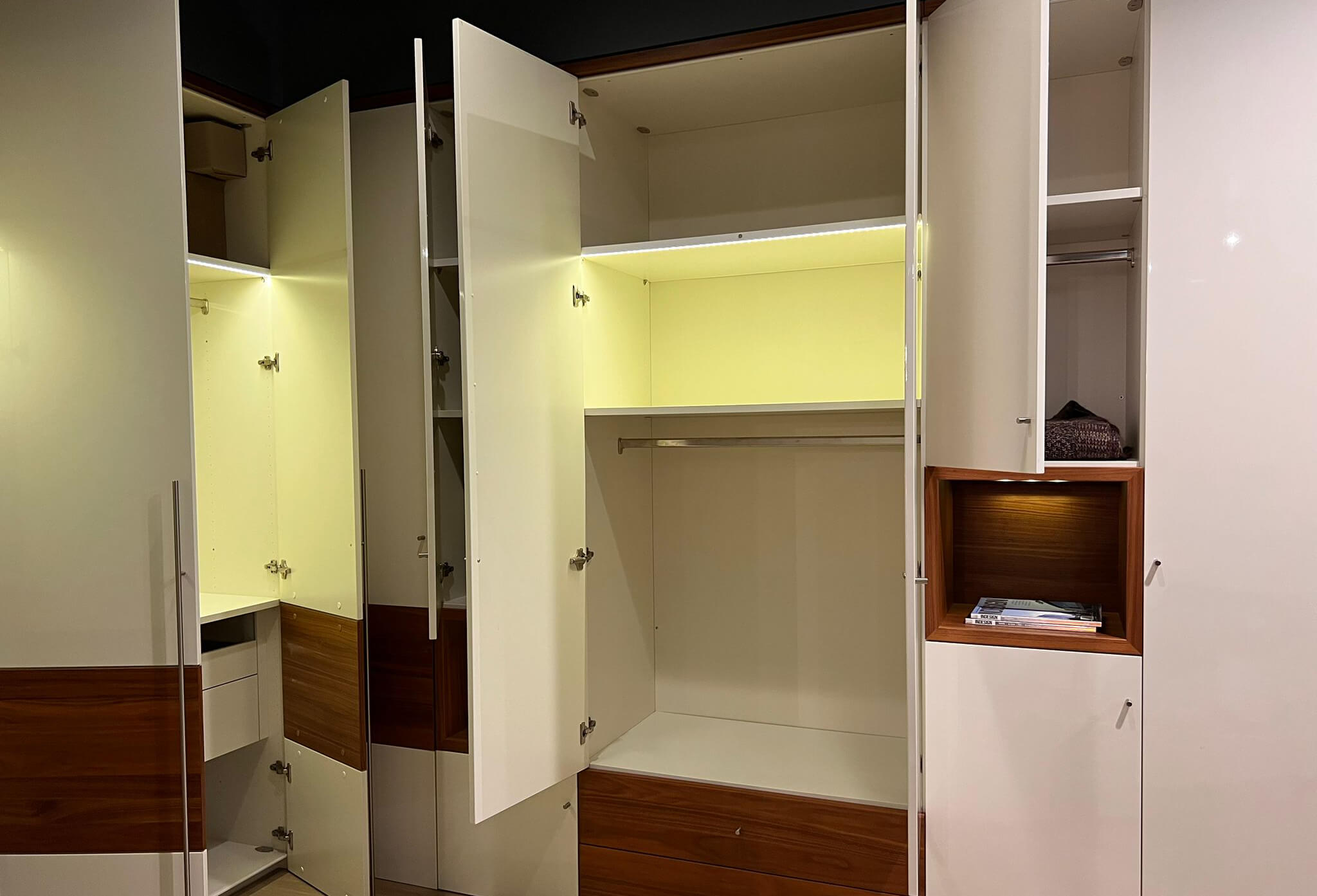 | Finishes | High Gloss: White Wooden Veneer: Core Walnut |